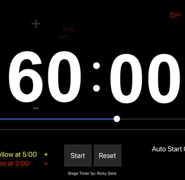 Children's Privacy: Stage Timer is not directed to children under 13 (or the applicable age in your region), and we do not knowingly collect data from children. Changes to This Policy: We may update this Privacy Policy from time to time. Any changes will be posted here with an updated effective date. If you have questions about this Privacy Policy, contact me at: rick@av1611audiovisual.com.